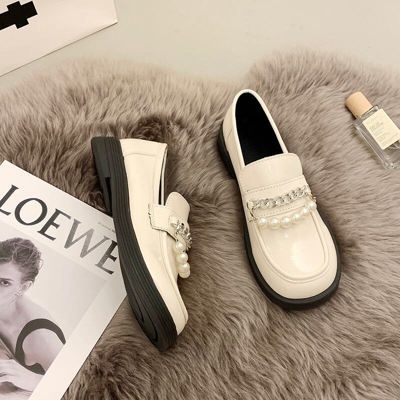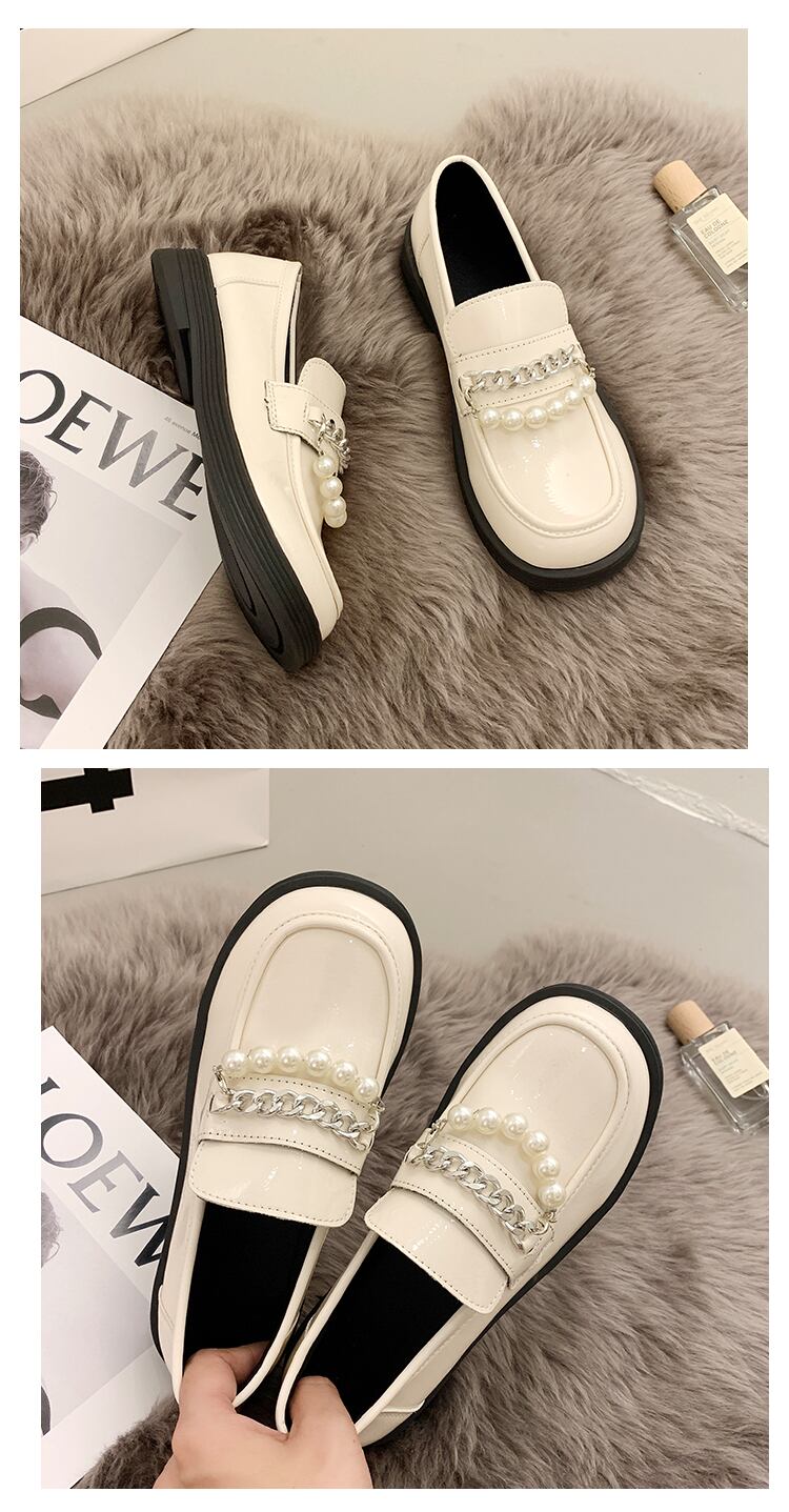 レザースプリングオータムパールチェーン スタイルスタンダードシングル 靴 シューズ レトロ 春物 秋物 真珠 スクウェア 部族の婦人靴17259328501