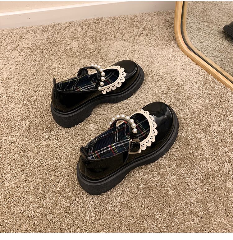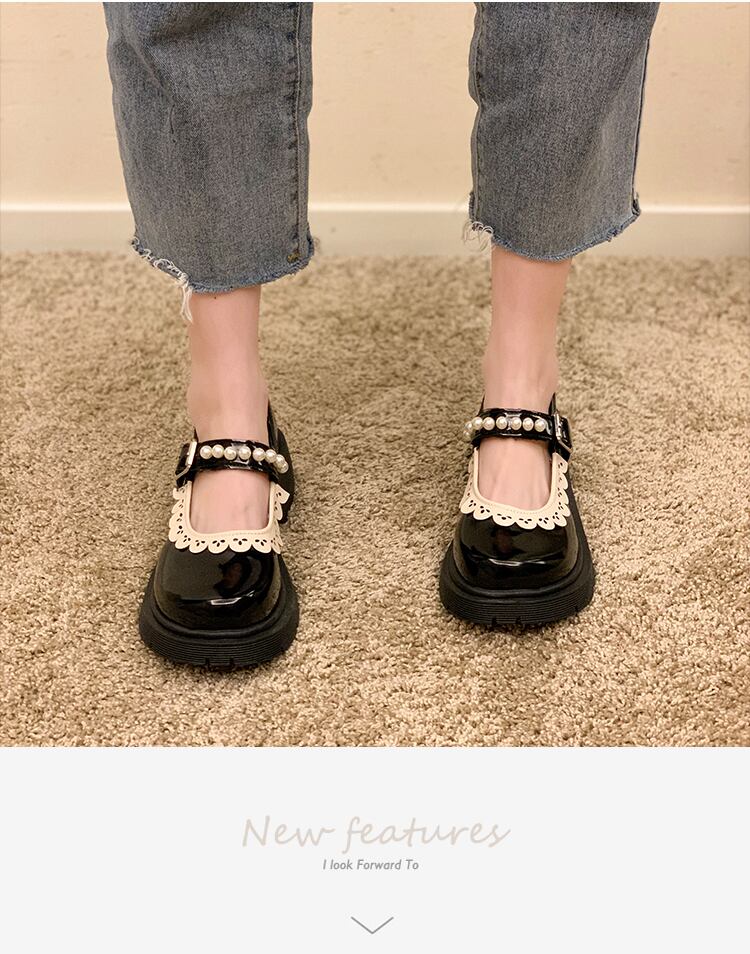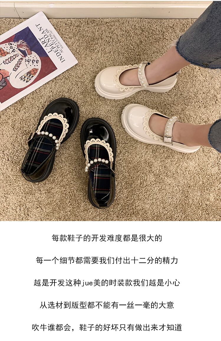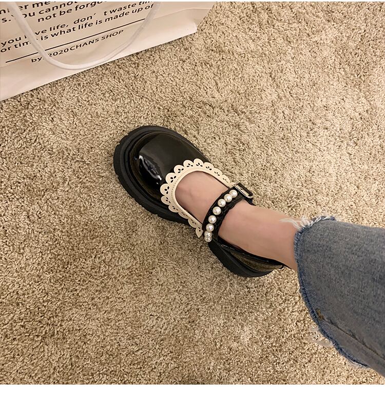 レザーオータムパールスタイル 靴 シューズ 秋物 ラウンドトー 真珠 部族の婦人靴31793537491