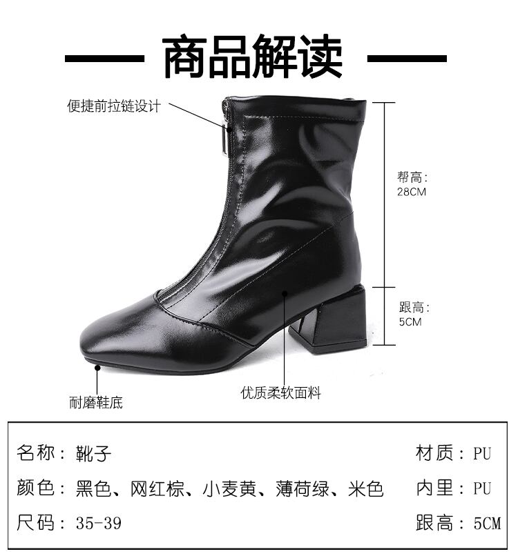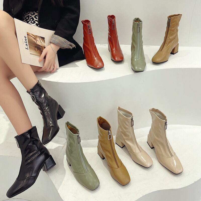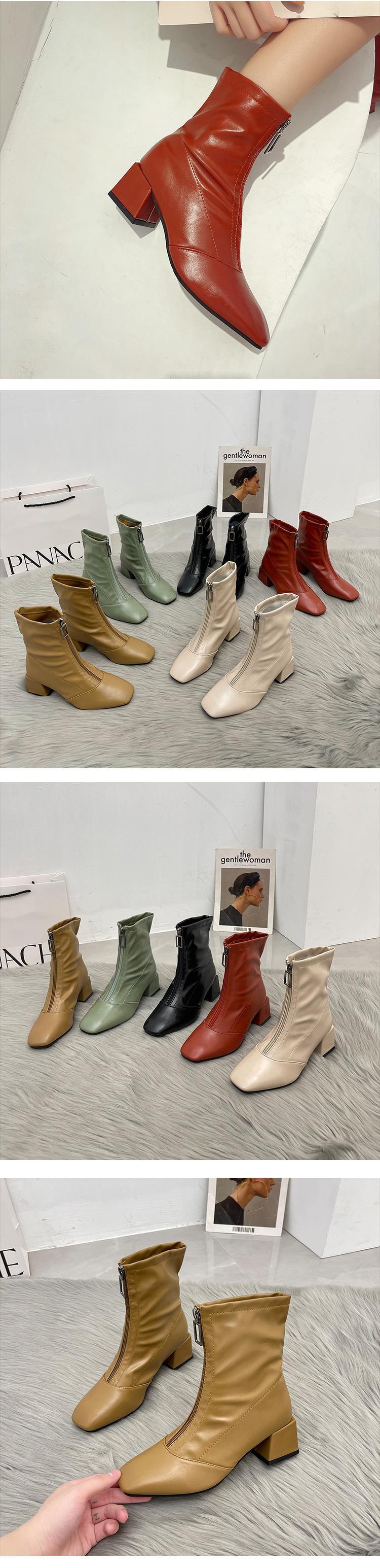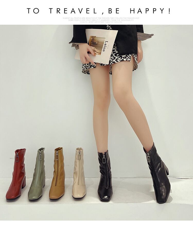 ショートブーツオータムレッドジッパー 靴 シューズ 秋物 スクウェア 部族の婦人靴93302352441