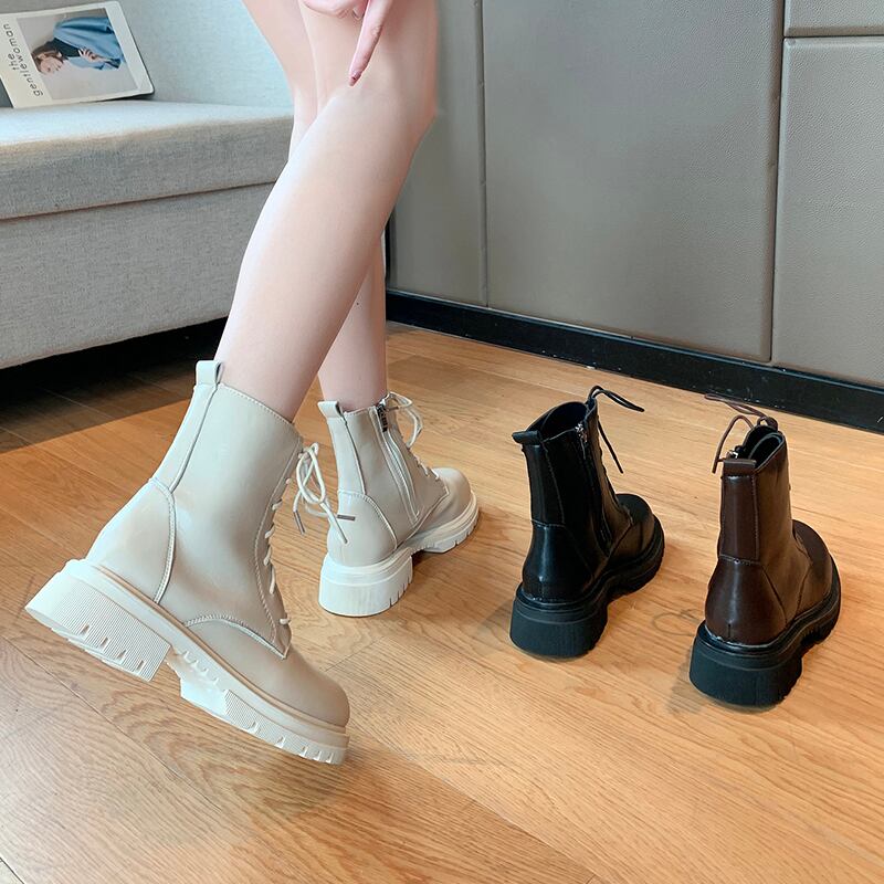 ブーツスプリングオータムレッドスタイルサイドジッパーショート レース 靴 シューズ 春物 秋物 ラウンドトー レースアップ 部族の婦人靴83475037746