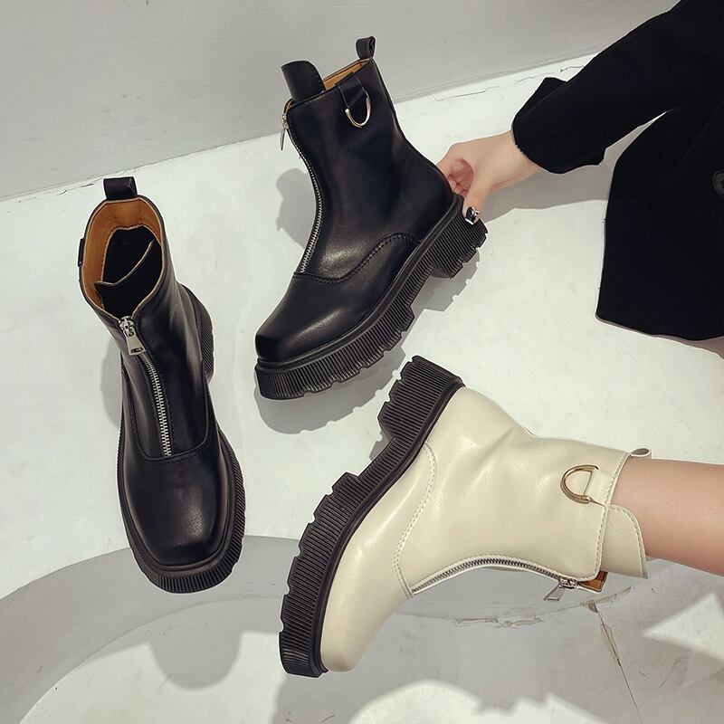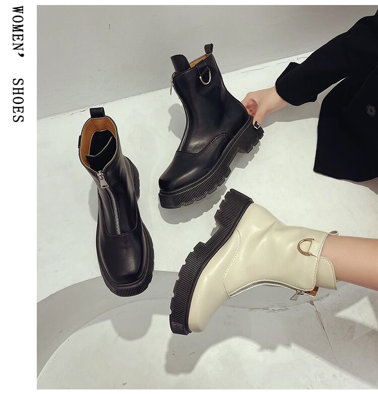 ブラックショートブーツジッパーオータム 靴 シューズ 秋物 部族の婦人靴46091552907