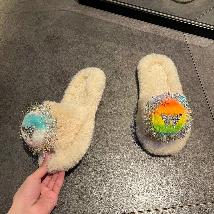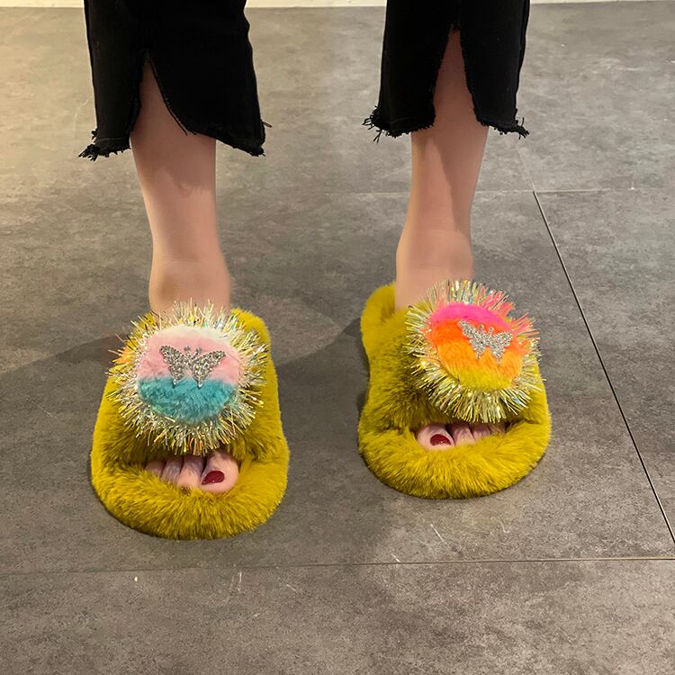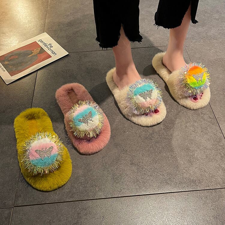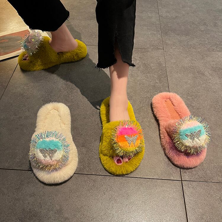スウェードサンダルオータムウィンターButterflyデザイン レッドミュールファー 靴 シューズ 秋物 冬物 部族の婦人靴6005132853