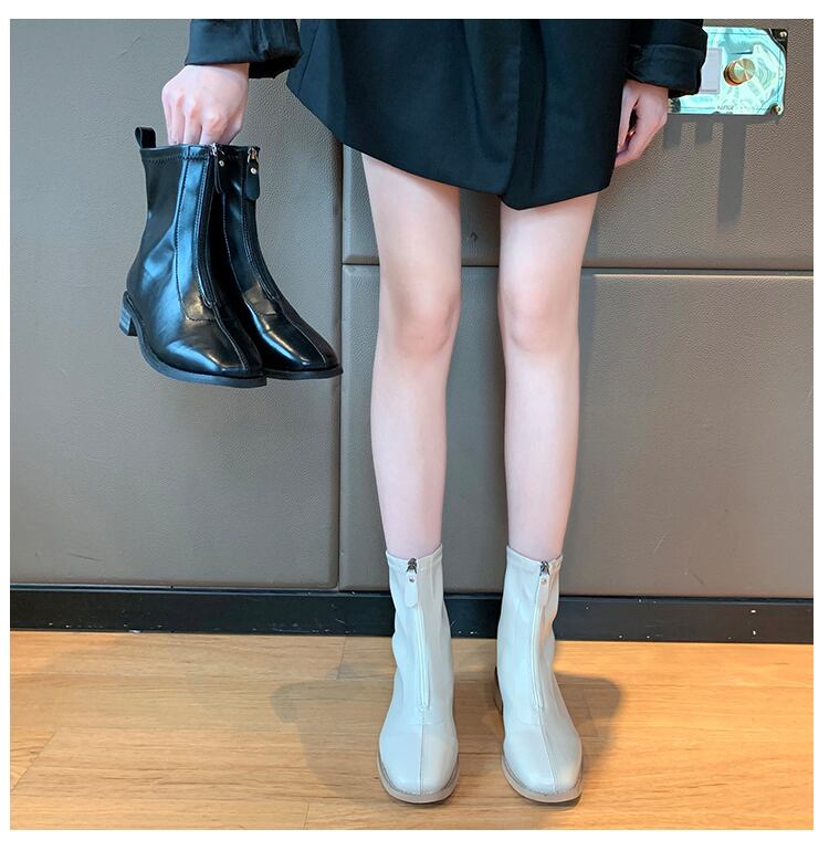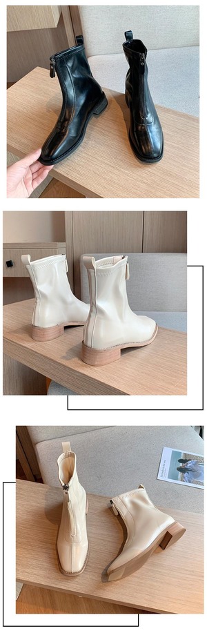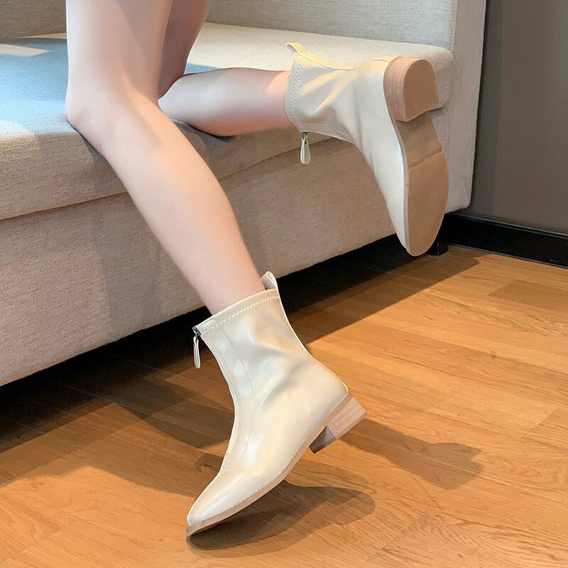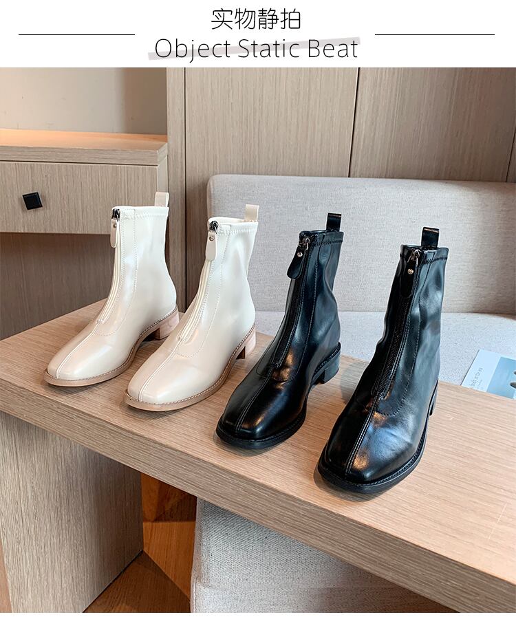 ホワイトショートブーツオータムスリムスタイル薄手 靴 シューズ 秋物 スクウェア 部族の婦人靴28030927954