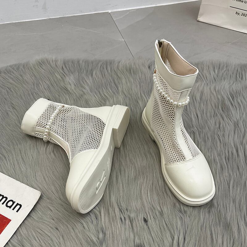 ショートブーツサマー薄手レッドパールメッシュサンダル 靴 シューズ 夏物 真珠 部族の婦人靴94015698562