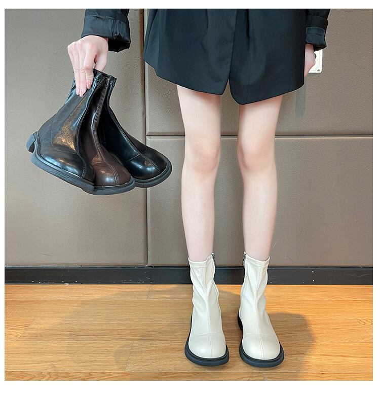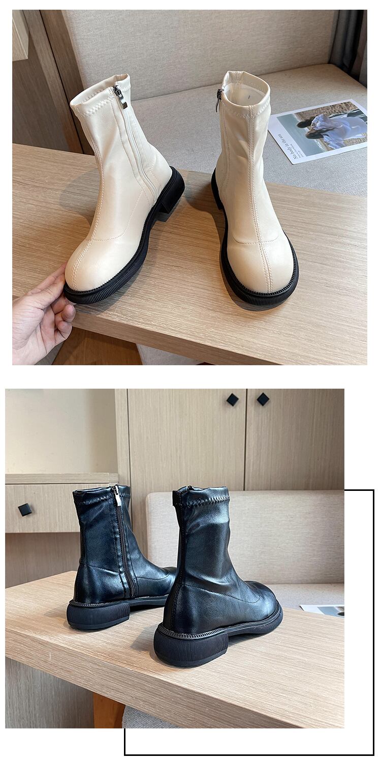 ホワイトショートブーツオータムレッドサイドジッパー薄手 靴 シューズ 秋物 部族の婦人靴19667533099