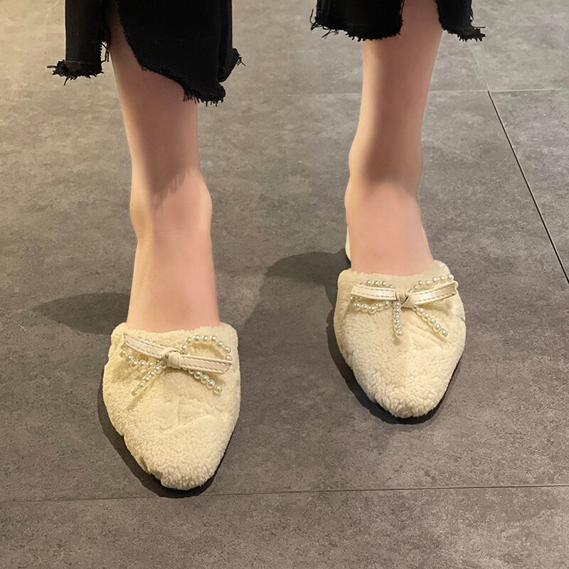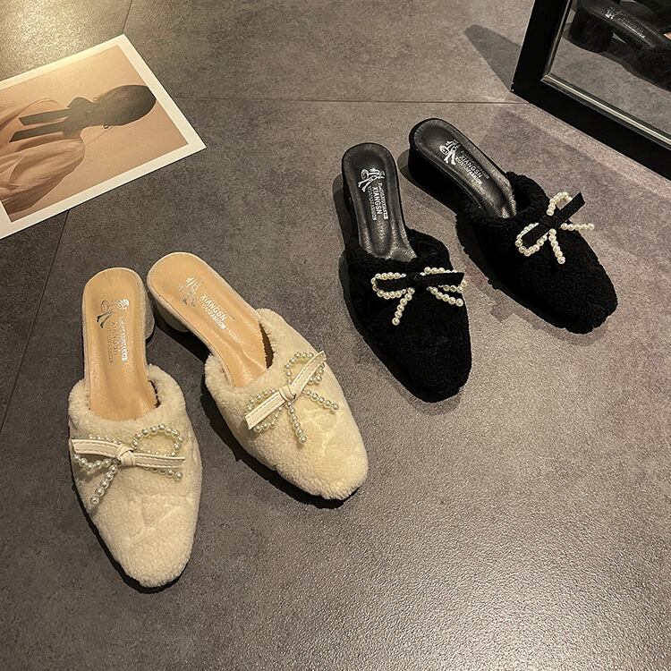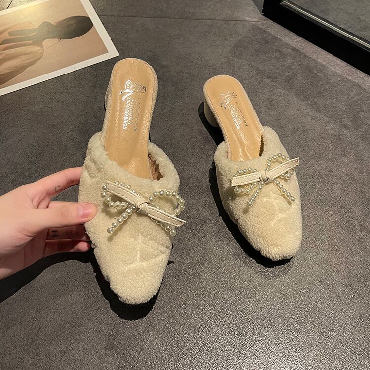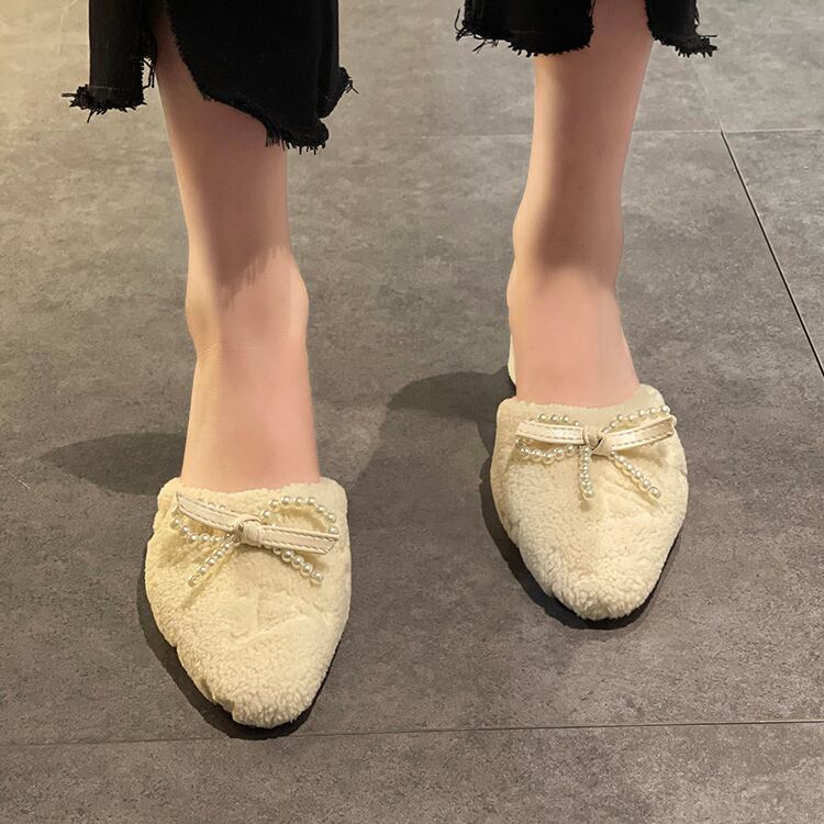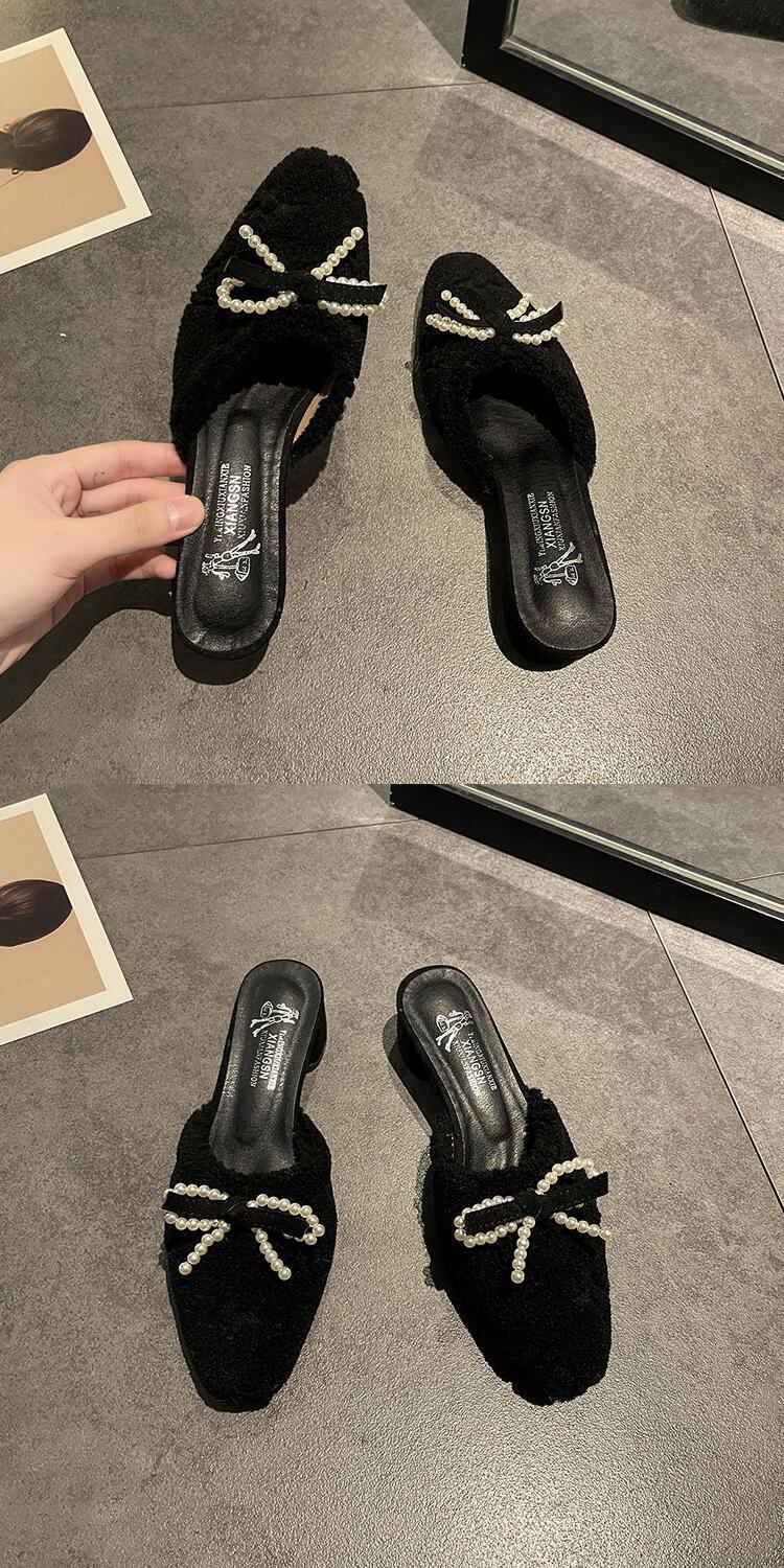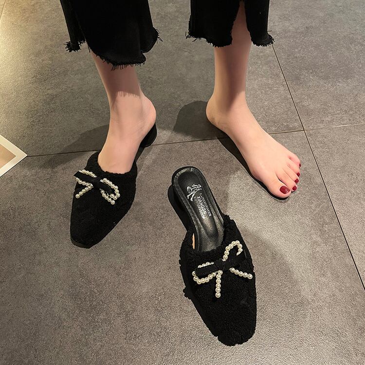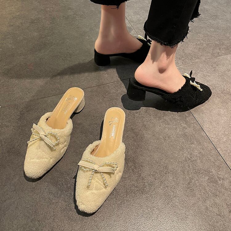 ミュールスプリングオータムパールリボンレッドサンダル 靴 シューズ 春物 秋物 真珠 部族の婦人靴70522978876