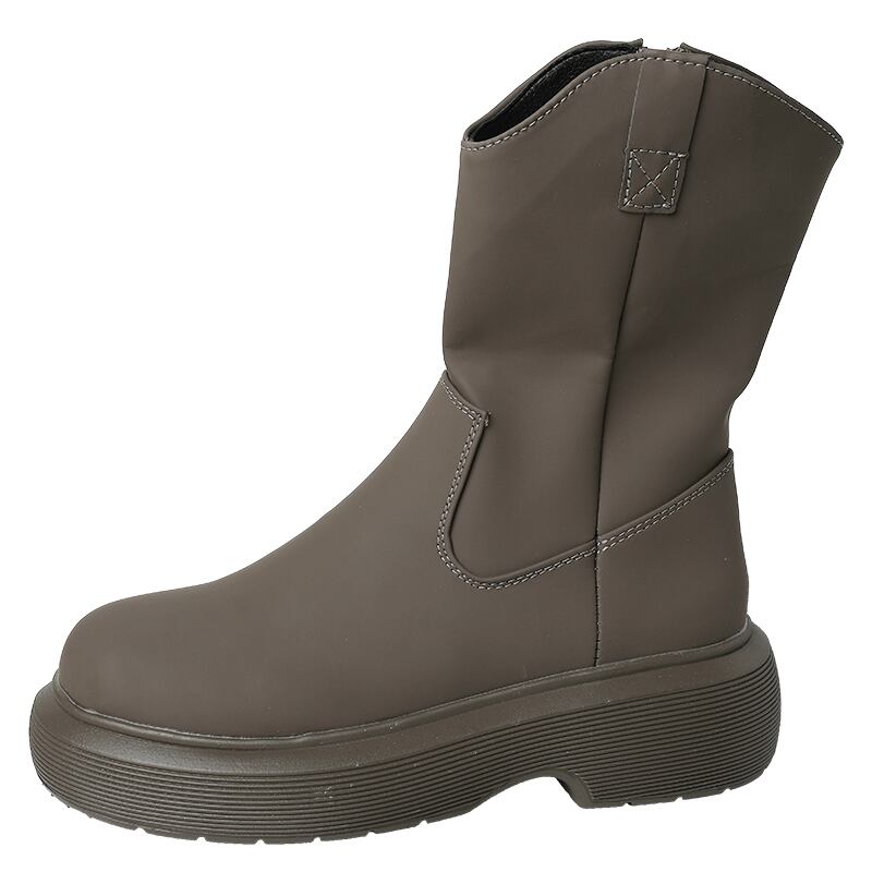 ブーツレッドサイドジッパースタイルグレーショートレディース 靴 シューズ ラウンドトー 部族の婦人靴58119368999