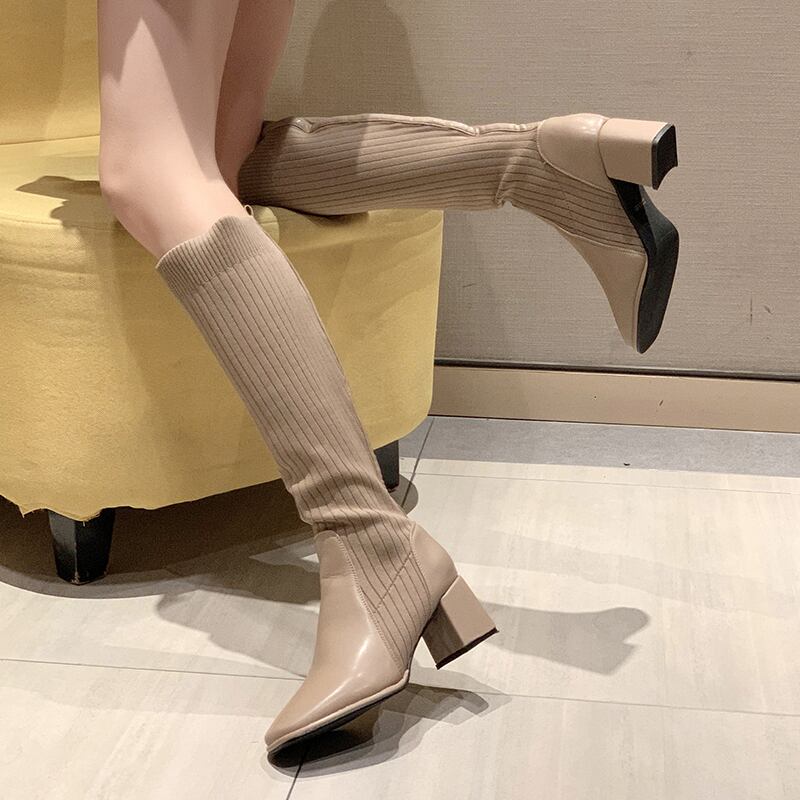 ブーツレディーススプリングオータム薄手ハイヒールソックス 靴 シューズ 春物 秋物 タイツ ストッキング 部族の婦人靴5833764022