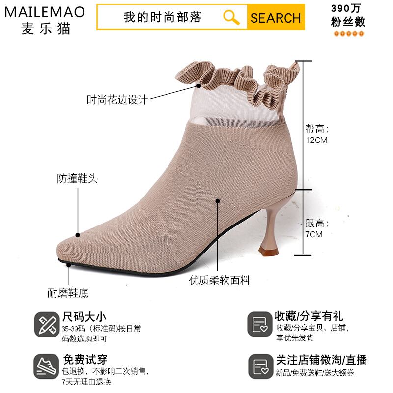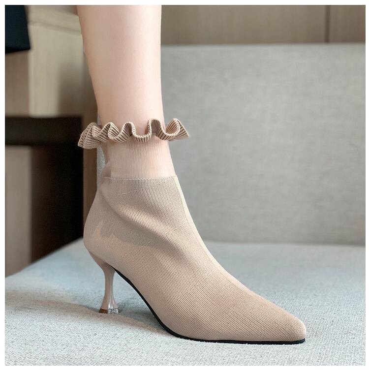 ブーツショートレディースオータムレッドニットヒール ハイヒール 靴 シューズ 秋物 部族の婦人靴22491688268