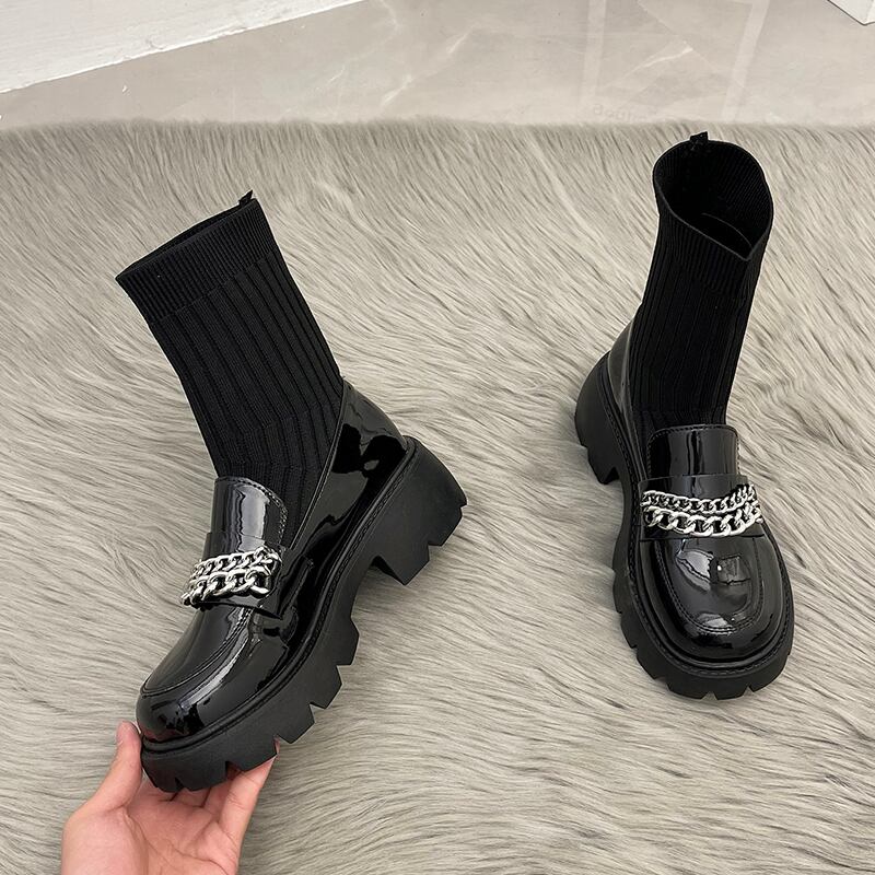 ソックス ブーツレディースブラックスタンダードストレッチ薄手ヒールオータムウィンター レトロ ハイヒール 靴 シューズ エラスティック 伸縮 秋物 冬物 タイツ ストッキング 部族の婦人靴41621331952