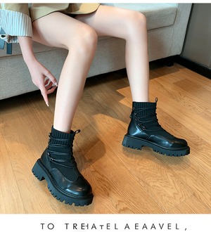 ブーツシングルブラックスタイルショート 靴 シューズ ラウンドトー 部族の婦人靴35438152732