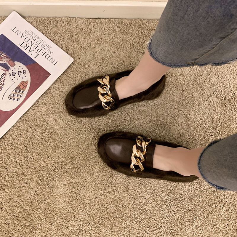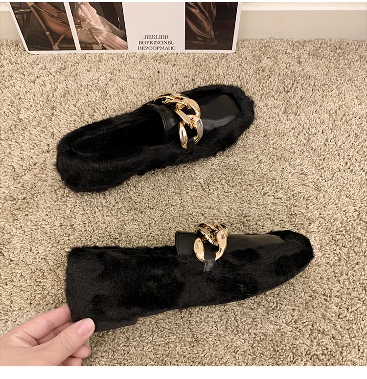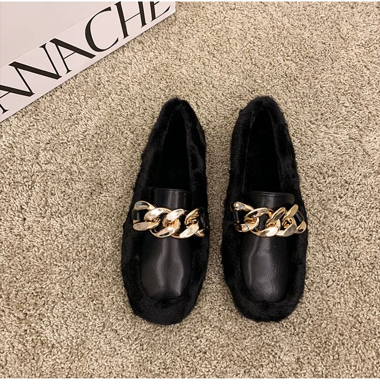 レザーオータムウィンタースタイルベルベットブラックファーシングル 靴 シューズ 秋物 冬物 部族の婦人靴43586247226