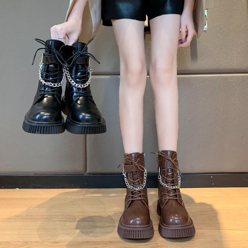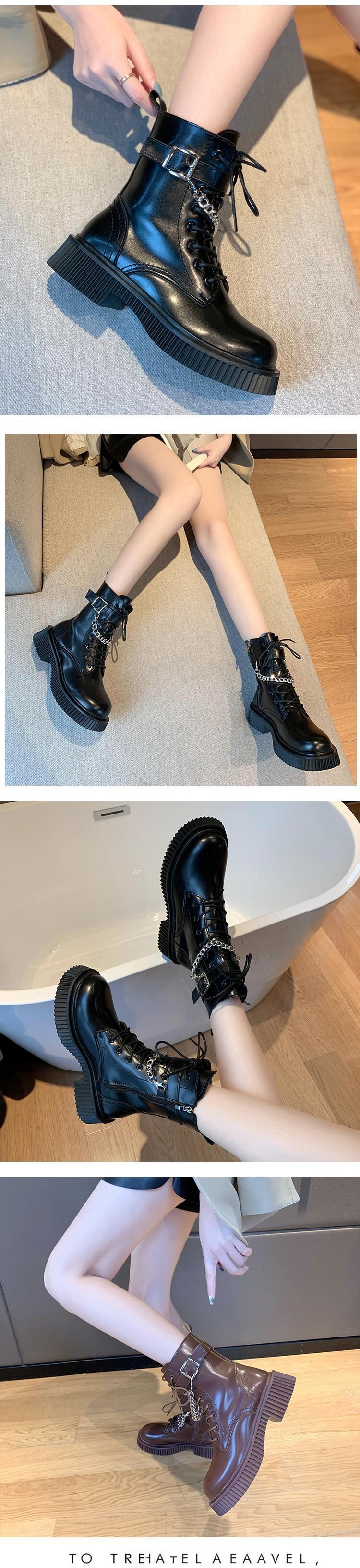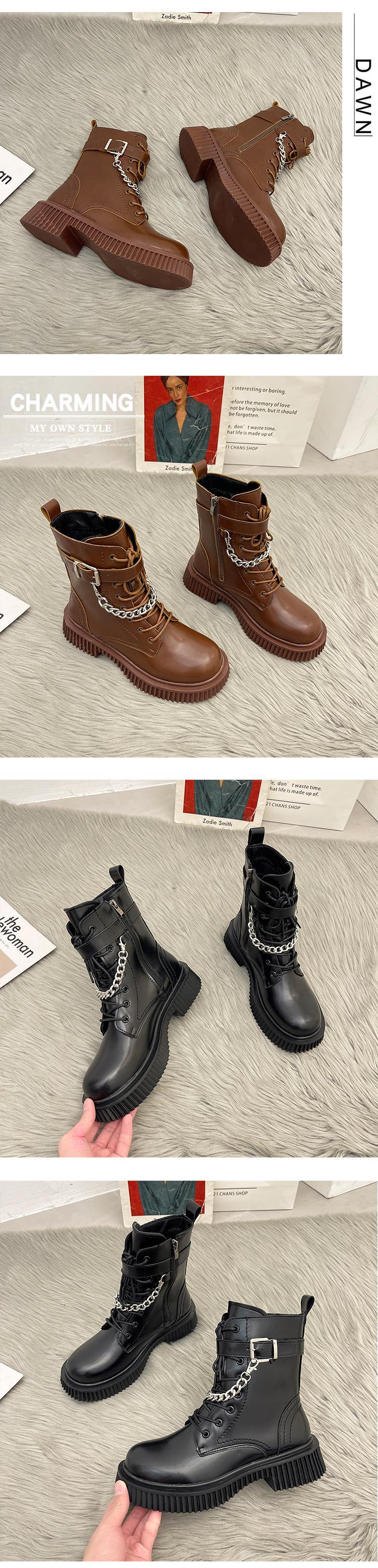 ブーツオータムウィンターレッドスタンダードベルベットチェーン ショート レトロ 靴 シューズ 秋物 冬物 部族の婦人靴18834688489