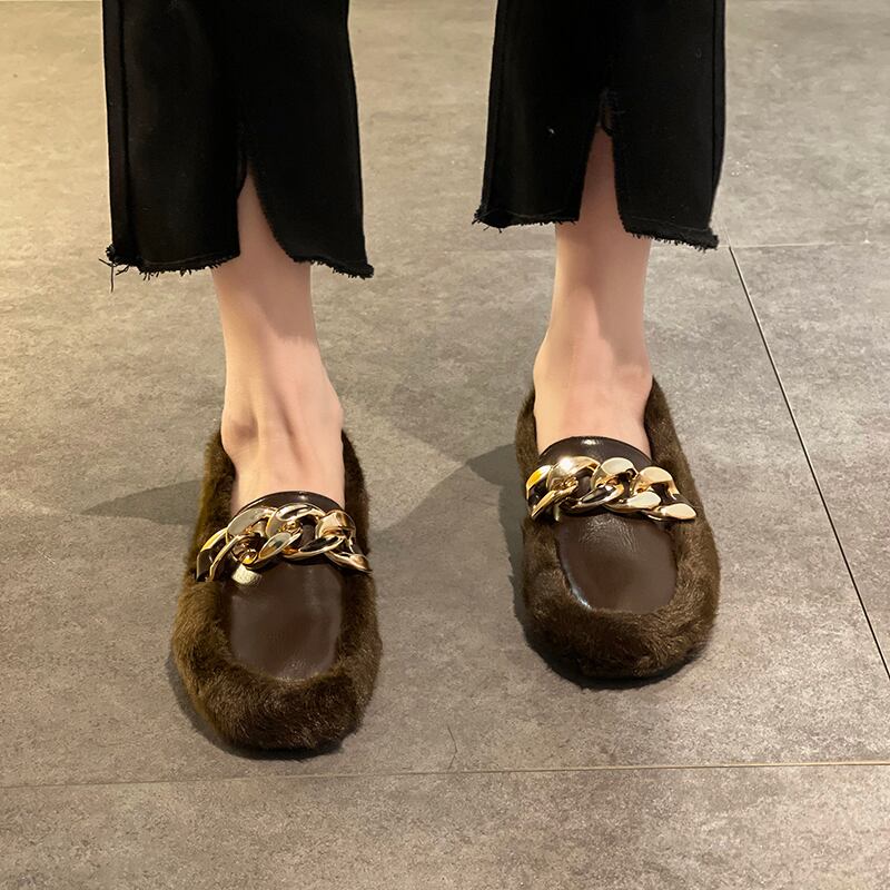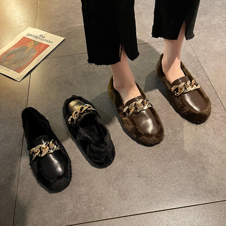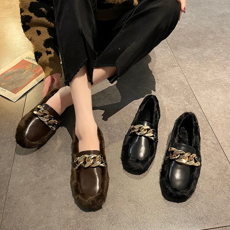 レザーレッドメタルチェーン スタイルウールシングル 靴 シューズ ウィンター 冬物 部族の婦人靴87427763512