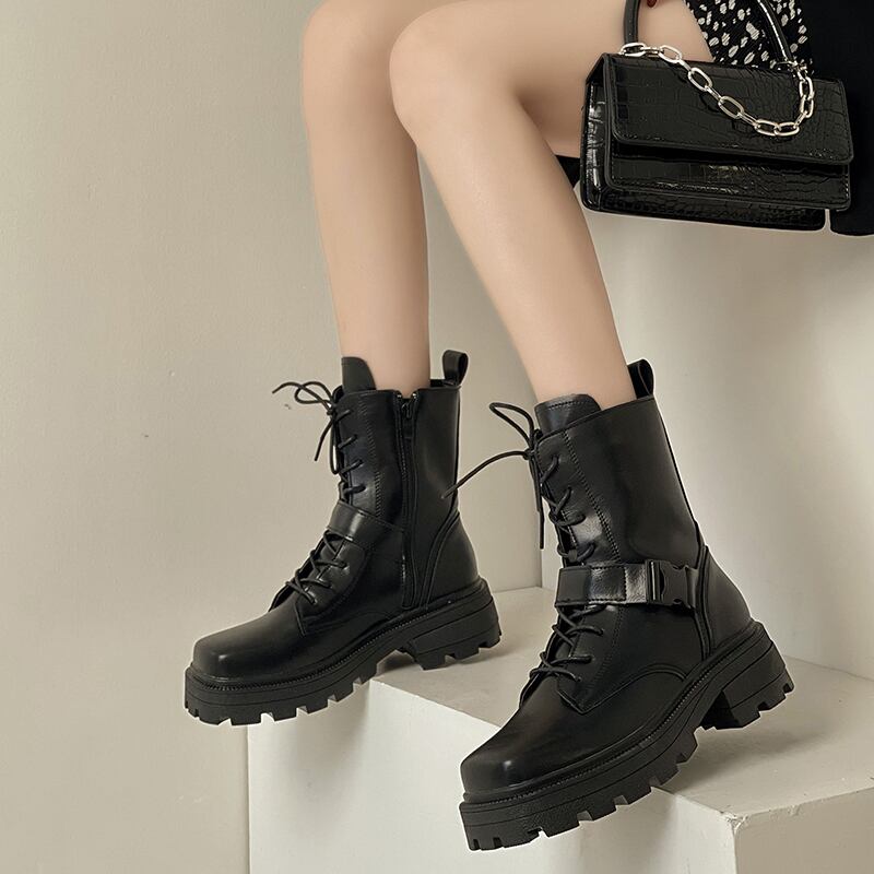 ブーツオータムウィンターサイドジッパー レース 靴 シューズ 秋物 冬物 レースアップ スクウェア 部族の婦人靴3008657721
