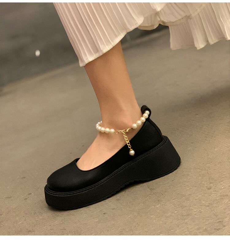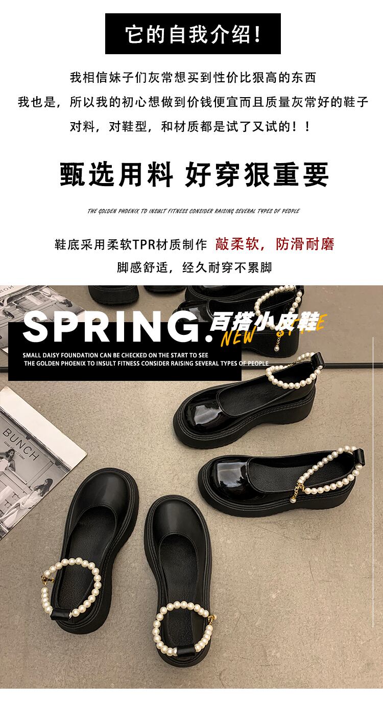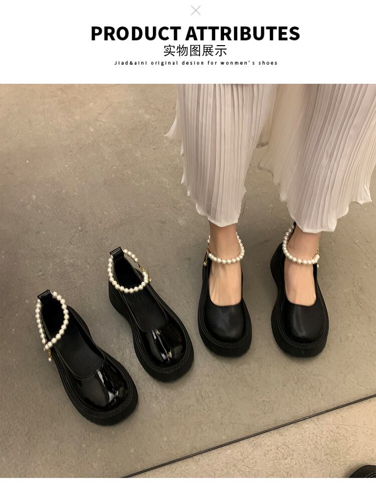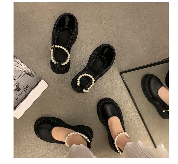 レザースプリングオータムパール 靴 シューズ 春物 秋物 ラウンドトー 真珠 部族の婦人靴93714433773