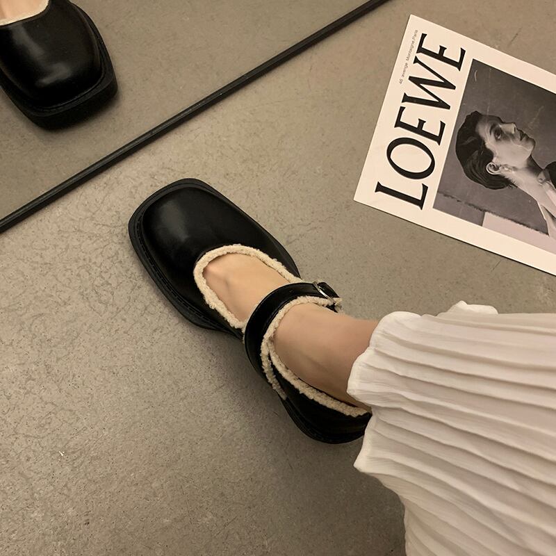 レザーオータムウィンターバックルシングル 靴 シューズ 秋物 冬物 スクウェア 部族の婦人靴80024420896