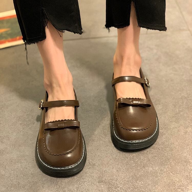 シングルレディーススプリングオータムスタイルブラックレザー 靴 シューズ 春物 秋物 ラウンドトー 部族の婦人靴73344910791