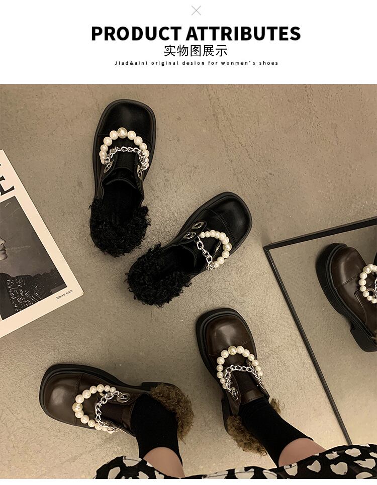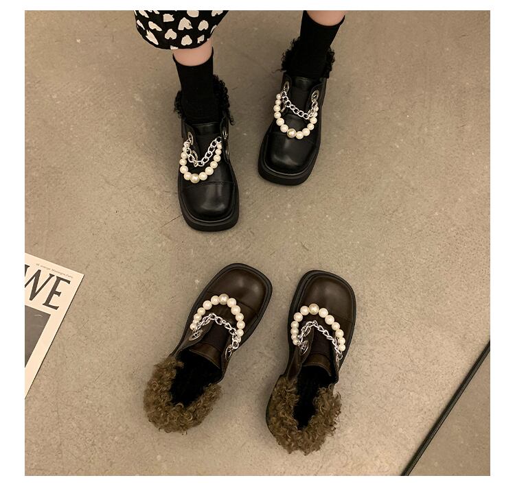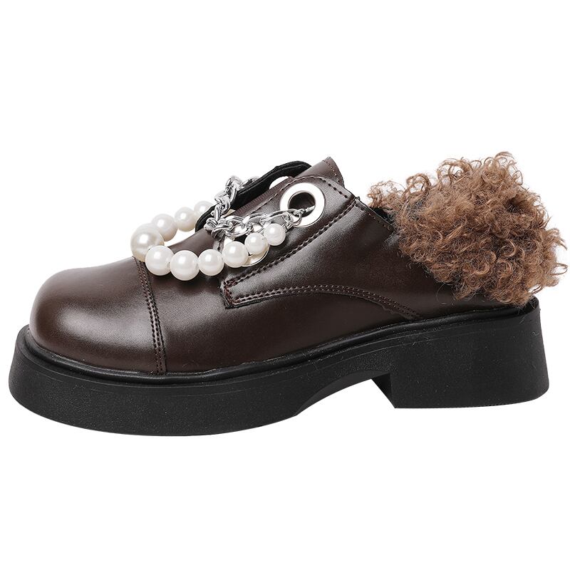 パールチェーン レザーオータムウィンターベルベットレッドスタンダード 靴 シューズ レトロ ローファー 秋物 冬物 真珠 部族の婦人靴65885439062
