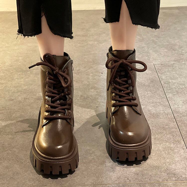 スタイルブーツウィンターレッドブラウンスタンダードショート レトロ レース 靴 シューズ 冬物 レースアップ 部族の婦人靴91359731311
